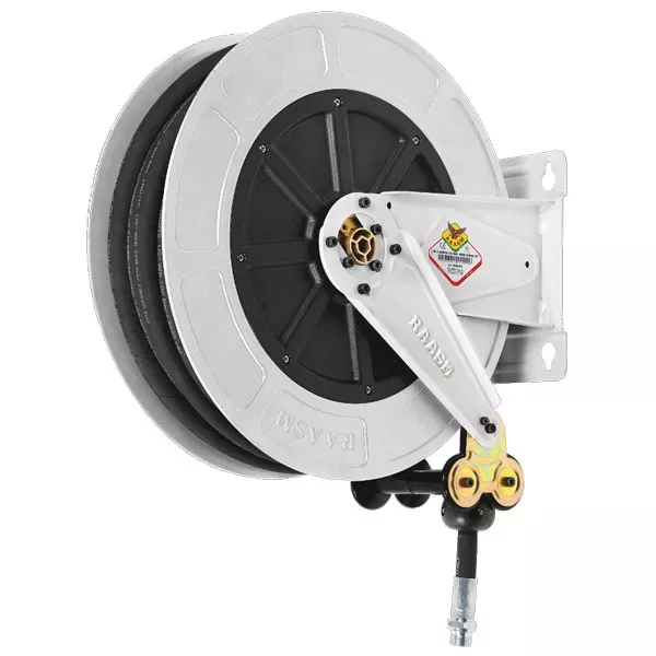 Enrouleur automatique pour un flexible de maximum 8 m de longueur, permet d'économiser de l'espace.